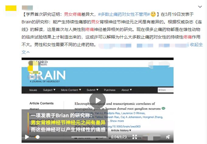 啥?连药物都有“性别”了?#多数止痛药对女性不管用#的话题引起了很多经常吃止疼药朋友的强烈关注。