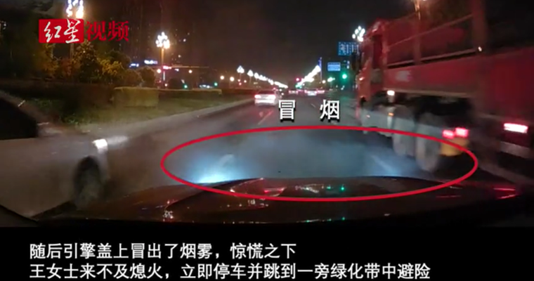 “我的第一反应是跳车嘛。”王女士说,担心车辆起火或者爆炸,自己甚至来不及熄火,拉上手刹,就跳下车到路中间的隔离带绿化区躲避。