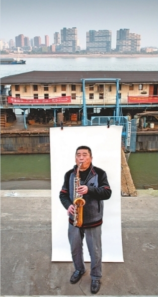 每逢好天气,石本祥会习惯在黄昏骑电动车来到江边,一个小音箱当扩音器,对着长江吹奏一会萨克斯,其脚下江面上停泊的鄂工51号趸船便是石本祥曾经工作过的地方——华中水下工程有限公司。