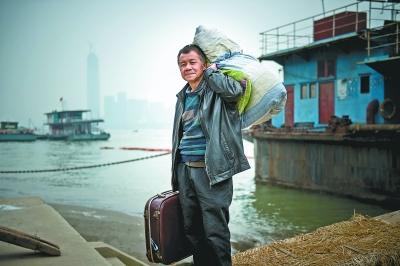 3月24日,值完最后一班,张亦建扛着行李上岸,在离别前,张亦建和老船合影留念 |