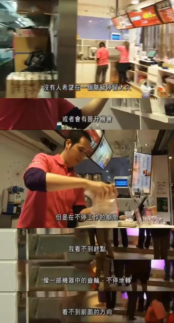 大律师感叹,在奶茶店,自己就像一部机器中的齿轮,不停地转,看不到前面的方向,也看不到终点。存钱是不可能的,扣除每天开支,已经没能力做任何事。