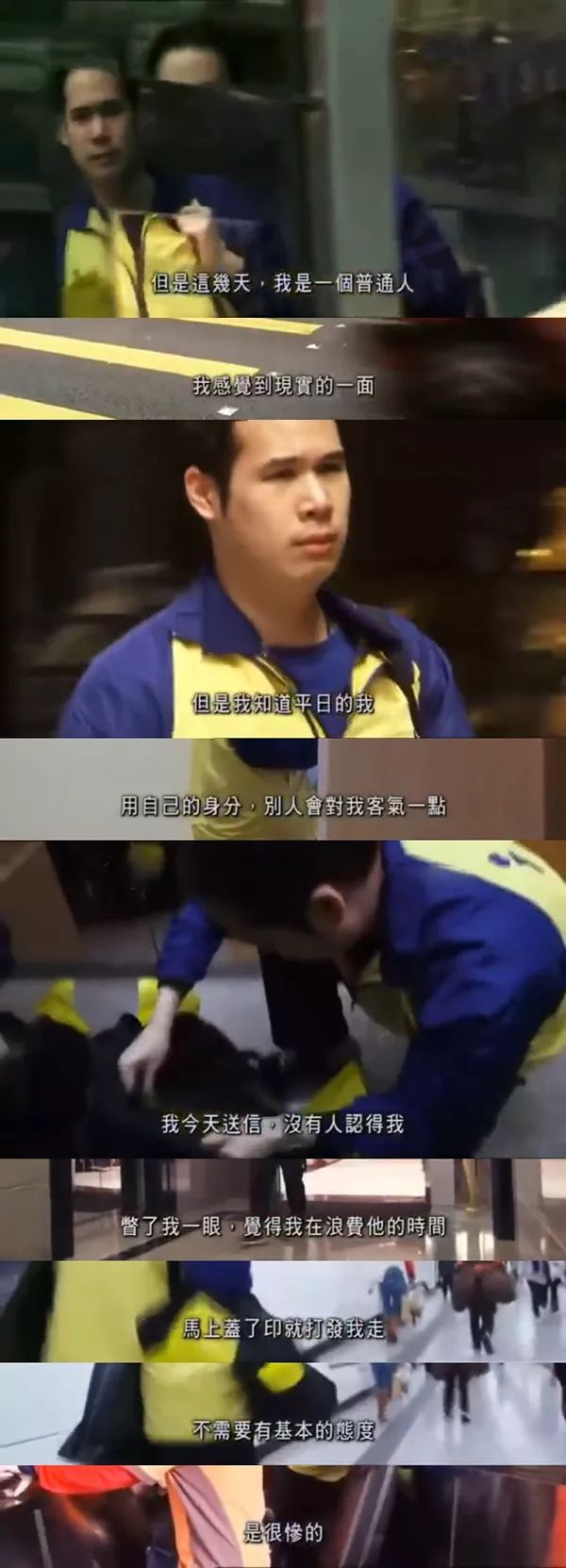后来,大律师又在物流公司找了一份送快递的工作,除了感受到劳动工作的辛酸外,他也坦言感受最深的一点,就是身分不同所被对待的方式是有明显差别的,这很现实,也很可悲,社会对低阶级人士的态度是不太友善的。