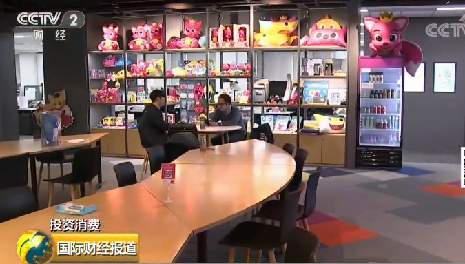 韩国“碰碰狐”专卖店负责人 赵恩妮:现在《鲨鱼宝宝》有声书也上市了,总共有10多种。书里不仅有音乐,还教孩子们如何养成好的生活习惯,反响很不错。