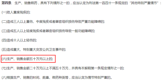 2014年12月1日施行的最高人民法院、最高人民检察院《关于办理危害药品安全刑事案件适用法律若干问题的解释》第四条中将销售金额认定为刑法第一百四十一条规定的“其他特别严重情节”。
