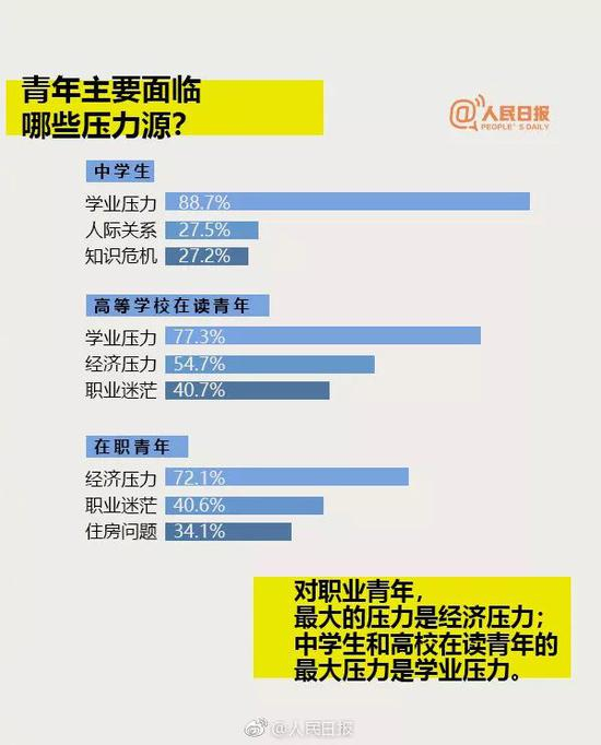 近日,中国青少年研究中心对青年进行了心理健康专题调查。调研发现,近三成青年有抑郁风险,过半有不同程度焦虑问题,经济、职业、学业是青年的三大压力源……