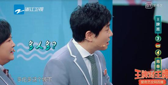 原来,游戏环节中主持人要求说出“ABAC”式成语。在“多福多寿”“多姿多彩”等词相继被说完后,沈腾情急之下说出了根本不是成语的“多伦多市”,让节目迎来了小高潮。