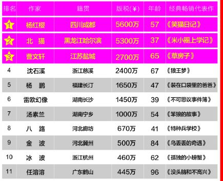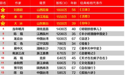 一个作家靠码字能赚多少钱?我们可以由媒体公布的作家富豪榜一探究竟。