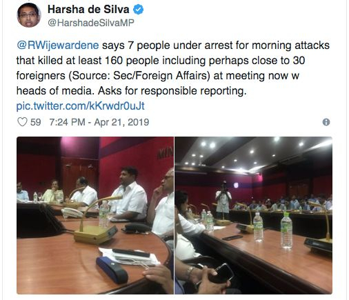 爆炸发生后,斯里兰卡总理维克勒马辛哈召集各方召开紧急会议。他谴责爆炸事件是“懦夫的”行径,“我呼吁所有斯里兰卡人在这一悲惨时刻保持团结和强大。政府正在立即采取措施控制这种情况。”