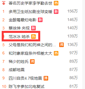 2月25日,“范冰冰 她杀”突然登上微博热搜。有多家媒体和营销号引用2018年《时尚芭莎》为电影《她杀》拍摄的剧照,报道《她杀》曝光新宣传照。由曹保平执导的《她杀》于2018年5月杀青,但由于范冰冰偷税漏税一事被曝光带来的不良影响,一直未能定档上映。有媒体向曹保平求证:“《她杀》还做吗?”曹保平直接回答:“为什么不做呢?”导演果断的回应引发多家媒体猜测,《她杀》或有希望在2019年登上大银幕。
