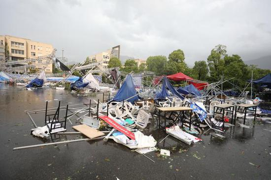 一名在温职院参与招聘会的张女士告诉记者,当时风很大把简易棚全部都刮了起来,现场一片混乱,所有在场人员都往教学楼方向跑。“现场受伤的学生和招聘人员很多,后来警车和救护车都来了,拉了好几车到医院。有一个女学生的手臂被简易棚的杆子插了一个小洞,肉都翻出来了,还有些被砸中了头,都是血。”