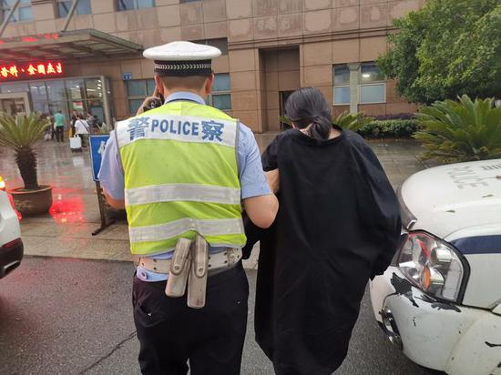 [16时30分]应对突发情况,温州警方、消防、卫健等部门第一时间参与救助。上图为交警在温州大学城救助受伤人员。