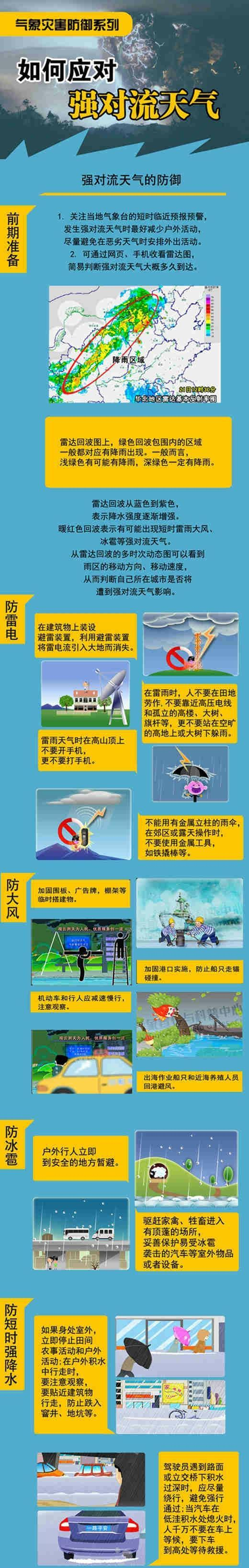 温馨提醒: 随整体气温回升,强对流天气逐渐增多,容易引发强雷电,8-10 级雷雨大风、短时暴雨及冰雹,请注意防范。