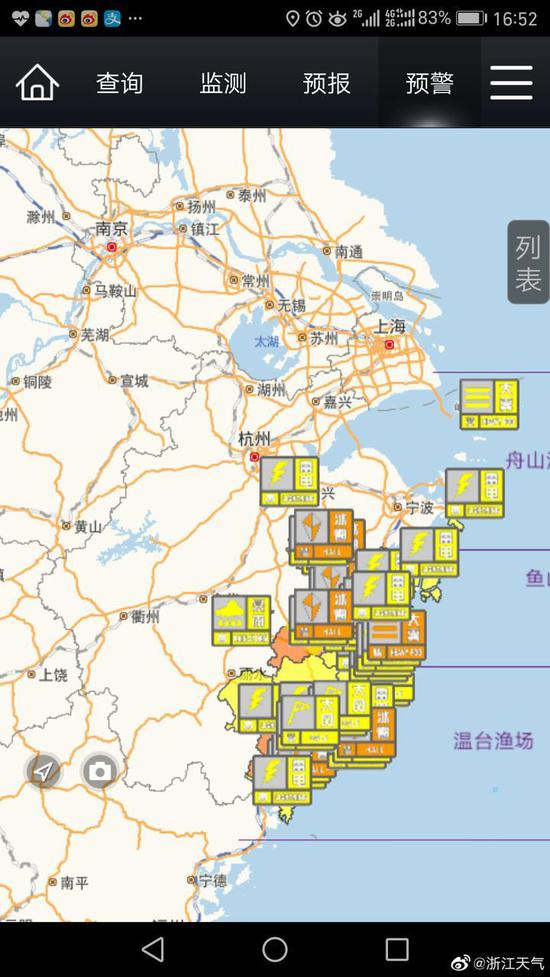 记者从温州气象网上获悉,今天14时起,永嘉、文成、瑞安、平阳、苍南、温州市区、乐清、洞头等地先后发布雷电黄色预警信号。