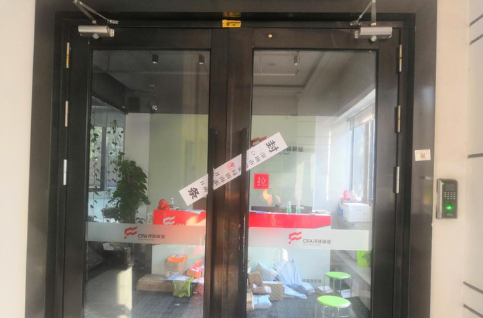 4月23日,券商中国记者来到淳锋资产的深圳总部实地走访。在宝安区新安街道创业二路得胜大厦二楼,现场一片狼藉,门上贴有深圳市公安局镇安派出所的封条,落款时间为2019年4月19日。