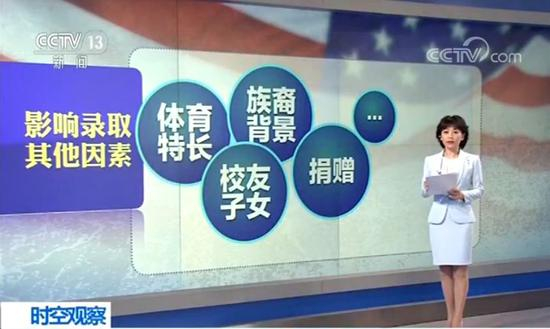 捐赠。美国许多大学会给富人子女录取入学的特权,父母给学校捐款,影响子女录取的标准。
