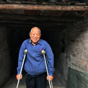 腿脚不便的乔大爷,走路需要用拐杖。