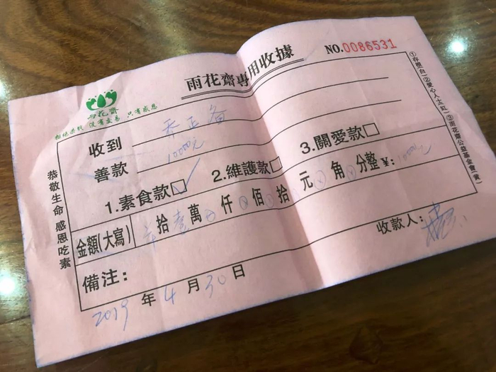 捐到了东莞 一家素食店里。