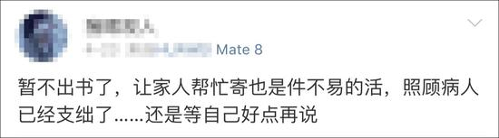 4月23日,他在微博写下,“让家人帮忙寄书是件不易的活,暂不出书了,等自己好点再说”,29日,微博更新停止。