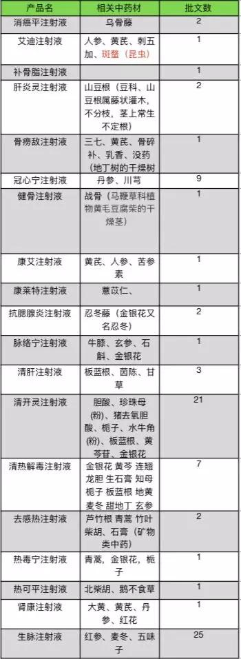 记者对中药注射液进行梳理,并列出相应的中药材,其中大部分为中草药,也不乏地龙(蚯蚓)、水蛭等虫类药材。