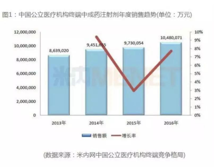 从销量来看,据米内网数据,2016年中国公立医疗机构(中国城市公立医院、县级公立医院、城市社区中心及乡镇卫生院)终端中药注射剂销售规模已超千亿元。2017年,注册用血栓通(冻干)、丹红注射液、注射用血塞通(冻干)位列中国公立医院机构终端中成药销量前三甲,分别超过70亿、60亿、50亿元。