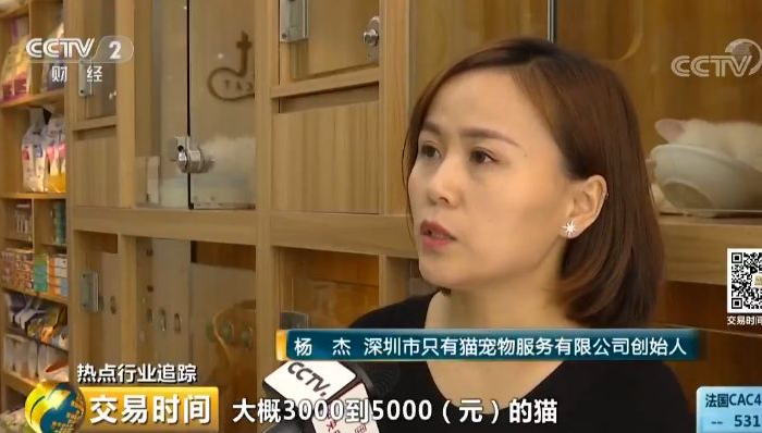 深圳市只有猫宠物服务有限公司创始人 杨杰:以前大概3000元-5000元的猫接受度会比较高一点,现在一般是5000元到10000元的,客户比较多。