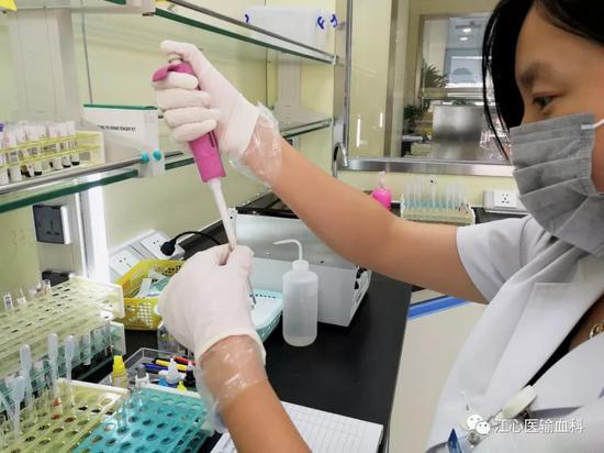 医院采集了袁女士、方先生、两个女儿、袁女士父母、弟弟、妹妹和妹妹的儿子共9人的血样,寄往江苏省血液中心输血研究所,进行血型基因测序。