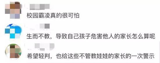 案件发生后,有网友表示,支持嫌疑人对进行校园霸凌的熊孩子给予教训。