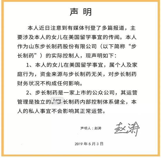“650万美元买上斯坦福”,“金钱+名校”两个关键词的组合点燃了舆论。步长集团董事长赵涛应该没有想到,随着舆论的发酵,集团的一切都被关注了起来。尽管他在官网上发出声明,力证家事与集团无关,也不影响集团正常经营,但是热议不断,步长制药还是引起了上交所的注意。