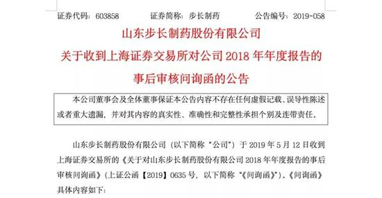 近日,上交所向步长制药发出了对其公司2018年年报的事后审核问询函,要求步长说明包括中药注射剂相关产品的疗效、自查是否存在媒体报道的不良反应或质量问题等13个疑问。