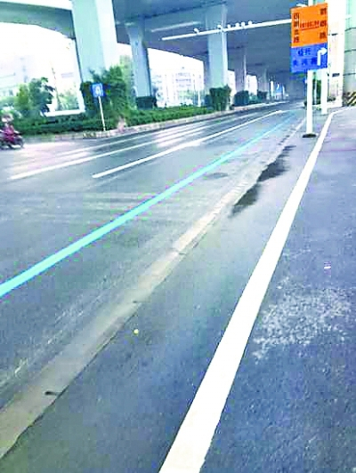 关艾与程仁斌均称,在马路上见到的多为黄线及白线,蓝线是干什么用的?记者前往现场看到,上述两地确实有蓝色标线。