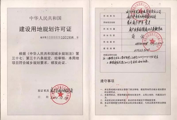 中国房地产报记者调查发现,威宁伊卓置业发展有限责任公司开发建设的草海养生基地陆续获得“五证”手续的时间线为:2010年12月14日,威宁县城乡规划局地字第5200001001994号建设用地规划许可证,用地性质商住;2011年12月,威宁县政府威国用(2011)第084号国土使用权证,土地用途为中低价位、中小套型普通商品住房用地;2011年4月19日,威宁县城乡规划局建字第520000201000753号建设工程规划许可证;2013年10月16日,威宁县房管局(2013)商房预字第15号商品房预售许可证;以及2011年6月1日、2011年12月25日、2014年3月5日,获准许可威宁县住建局编号5224272011048、编号522427201109240101、编号5224272014025建筑工程施工许可证(注:上述证件并不是该项目所有审批手续)。
