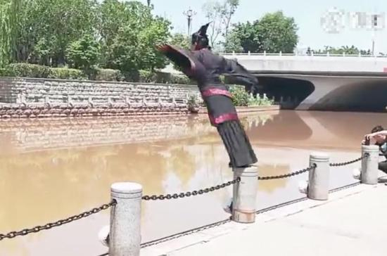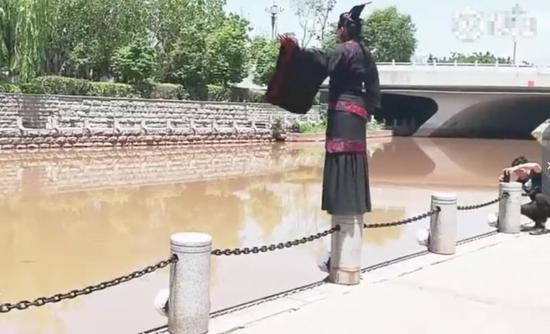 视频-男子穿汉服cos屈原跳河?高喊“又何怀乎故都!”
