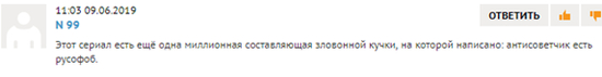 网友N 99:“这个电视剧还有一百万个恶心的部分,上面写着:反苏联就是反俄罗斯。”