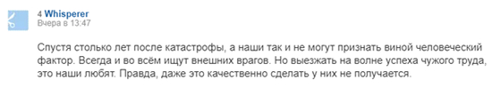 网友4 Whisperer:“在灾难发生这么多年后,我们仍然不能承认人为错误的事实。总是在任何事情上寻找外部敌人。但是,跟着别人成功的潮流走是我们的人喜欢做的事情。事实上,即使是在(剧集的)质量上,他们也做不到(像HBO那样)。”