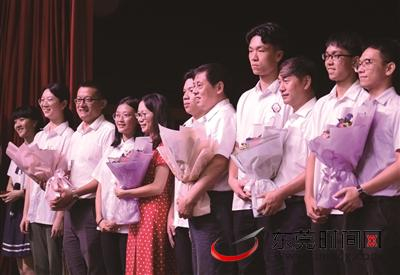 ▲昨日,东莞中学大礼堂,市教育局局长梁凤鸣、东莞中学校长黄灿明为同学们颁发毕业证书 本组图片均由记者 陈帆 摄