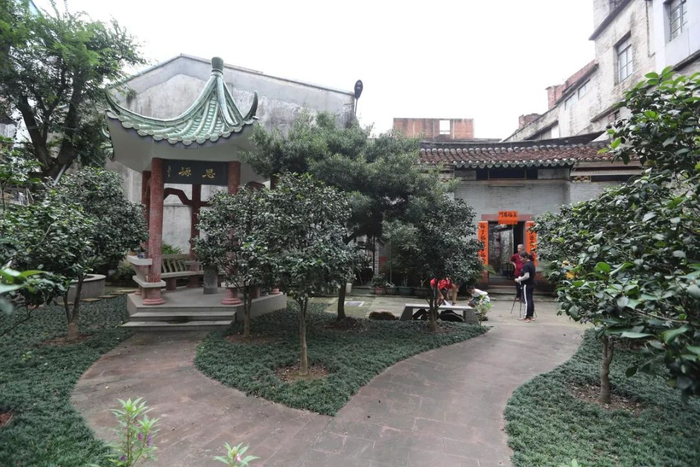 在茶园公仔庭院里,老人工作之余整饬的绿植,绿意盎然。随着老人手中剪刀的咔嚓咔嚓,一些旁枝被裁落,一些回忆被剪开。
