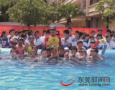 市红十字水上救援大队副队长吴志前也活跃在各镇街学校开展防溺水活动。“世界冠军教学生防溺水”说的就是他。吴志前是国际级运动健将,国家一级教练员,曾获第七届世界蹼泳锦标赛冠军。