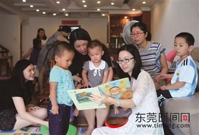 上周日,东莞报业传媒集团妈咪HOME亲子平台小粉丝们,就来到了小桃子家做客,听桃子妈姚菲菲讲故事。孩子们甚至爬到了姚菲菲的身上,坐在她的怀里,侧耳倾听。接着,桃子妈还带着大家一起拿玩偶编故事……
