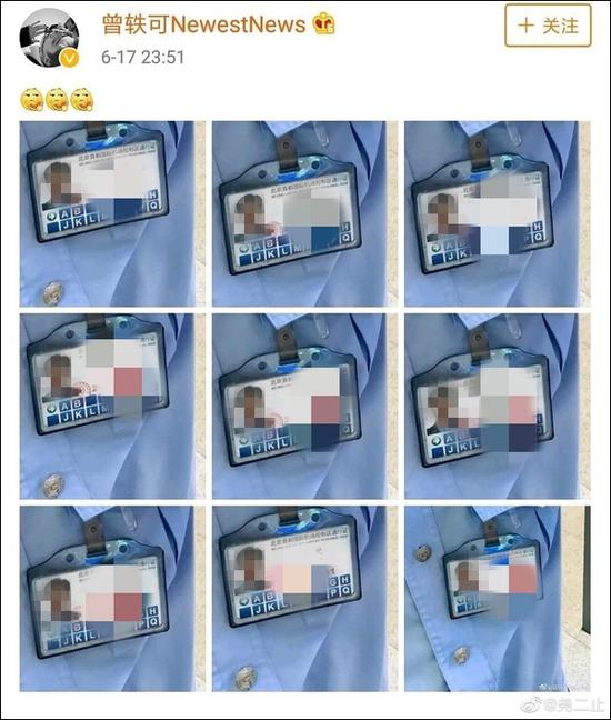 深夜,曾轶可还把该边检人员证件照的放大图,没打码处理地以“九宫格”形式再次曝光。