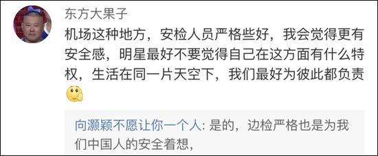 有网友指出在机场过关检查过程中,每个人都应该配合边检人员的调查,“明星没有特权”。