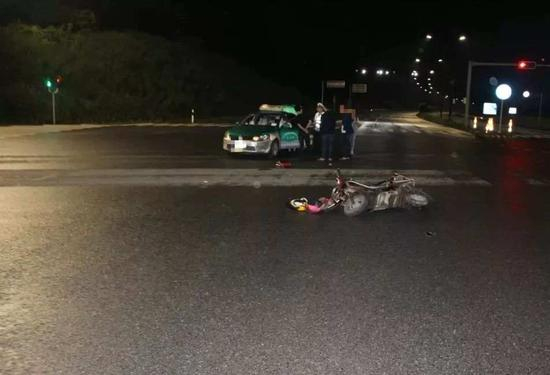 苏溪大队交警赶到现场的时候,庞某和妻子已经被急救车送往医院,出租车驾驶员在事发现场等着,庞某的几个亲戚也在旁边,电动车还倒在道路中间,周围都是散落的塑料零部件。