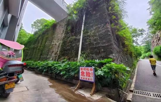 一直到现在,护坡上的石块还偶尔会掉下来,路的前面已经设置了“堡坎松动,危险!请绕道通行”的指示牌。