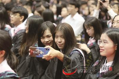▲同学们在毕业典礼现场“晒”自拍 图片均由记者 陈栋 摄