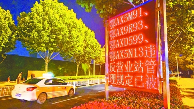 5月31日、6月17日晚10时左右,记者驱车沿武汉站东西高架、黄鹤路、白云路、和谐路、团结大道等路段观察,6条出租车严管路段上,均未发现出租车违规停靠、询问揽客等现象,所有车辆均按秩序前往出租车站点内候客。黄鹤路上,一块大型显示牌上标明,“鄂AX5M91、鄂AX9R93、鄂AXD599、鄂AX5N13违反营业站管理规定已被处罚,罚款2000元。”醒目的红体字还提醒出租车驾驶员:“一律进营业站点候客载客,违者将按违反营业站管理规定进行处罚。”记者发现,5月12日晚在黄鹤路上兜圈揽客的鄂AX5N13出租车已然在处罚之列。