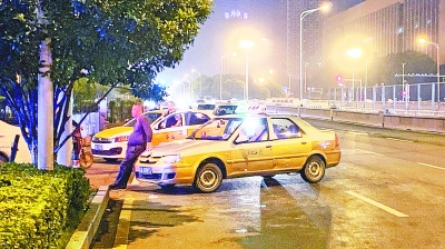 晚11时,记者来到白云路,白云路设置有两个交通执法岗亭,数名交通执法人员在路上巡查,看到有车辆停靠路边,立即上前提醒驶离。但仍有少数出租车看到路边没有执法人员后,便停在拖行李的旅客前,询问目的地。