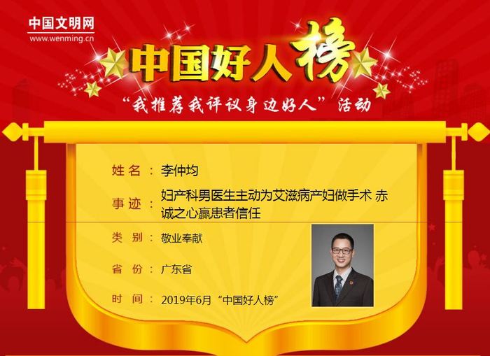 他多次被医院评为“先进工作者”、“优秀带教老师”、“优秀党员”和首届“最美医生”,还获得“广东省最美产科医师”、“东莞好人”和“广东好人”