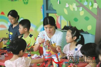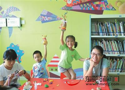 毕业于广州美院的小青老师原来在一个公办小学教美术,几年前,她辞职开始从事跟幼儿美术教育有关的工作。而最近几个月,她一直在万江图书馆做志愿者,教孩子们阅读做手工。
