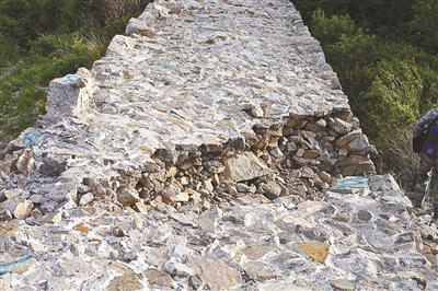 北京一明长城疑遭人破坏 城墙被豁出2米多长口子