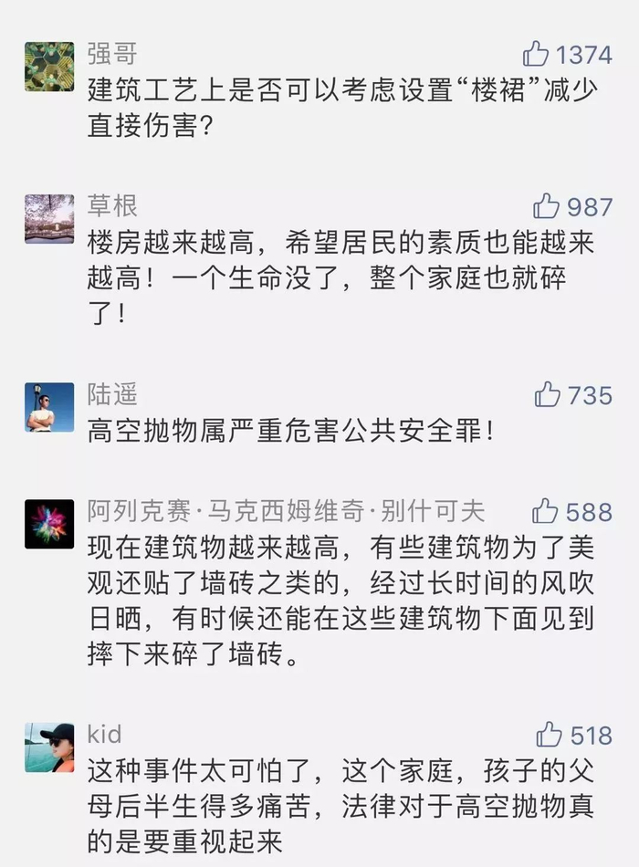 网友热议高空坠物:心痛、担忧