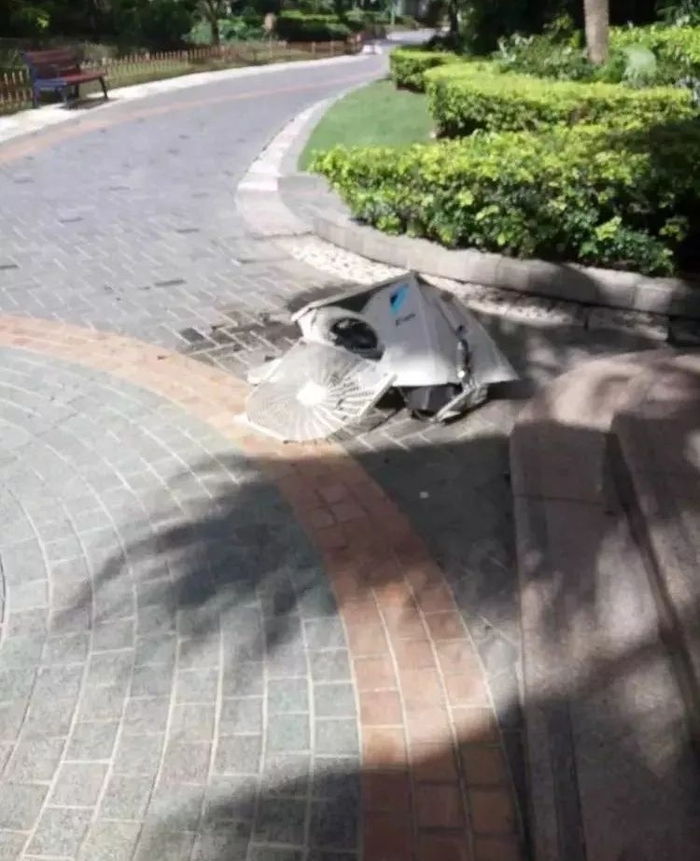 空调主机从11楼掉下!治理高空坠物,刻不容缓!